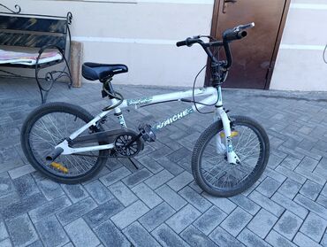 BMX-велосипед для трюков и катания по городу. Особенности: - Стальная рама BMX с усиленной верхней трубой. - Колеса примерно 20" с широкими покрышками полуслик/грунт и частыми спицами. - Односкоро...