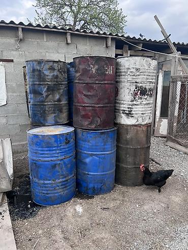 Металлические бочки 200 литров - Материал: сталь, цельные цилиндрические барабаны с ребрами жесткости. - Объем: около 200 литров каждая. - Цвета/маркировка: красные, зеленые, синие; встречаются с ...