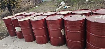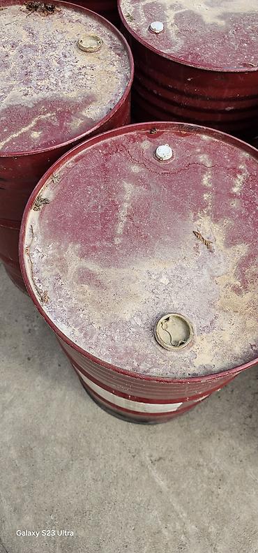 Металлические бочки 200 л, красные, с верхними резьбовыми горловинами (2 штуки на крышке: большая и малая под пробки/вент). Крышка не съемная (цельная, герметичная), стенка гофрированная для прочности. Подходят для хранения и транспортировки ГСМ, масел, растворителей, технических жидкостей, воды для полива, сыпучих материалов. На части тары сохранены бирки/знаки опасных грузов.