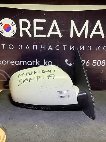 Автомобильное боковое зеркало (RS, правый) заднего вида Hyundai Santa Fe (2009). Зеркало имеет светлый корпус и черное основание для крепления. Подходит для замены поврежденного или отсутствующего зеркала.