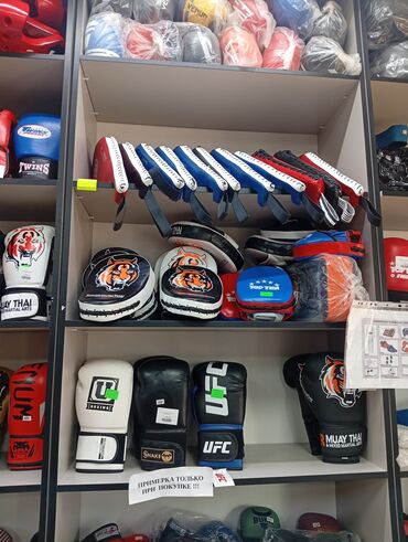 - Боксерские перчатки и перчатки для тайского бокса/кикбоксинга: Everlast, Twins Special, Fairtex, Venum, Adidas, Top Ten, Title, Green Hill, RDX, UFC, Glory, Boon, Grant и др. Разные веса и размеры, фиксация на липучке, анатомическая форма, усиленная защита запястья.