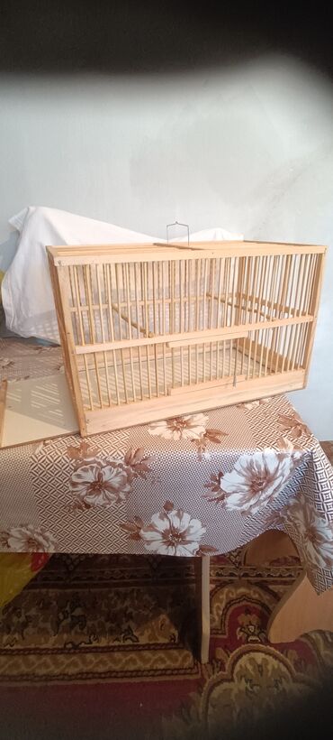 Габариты ориентировочно: крупная, вытянутая по длине (см. фото для масштаба). Отлично подойдёт для содержания или временной перевозки/выставки птиц, а также как просторная вольерная клетка для дома.