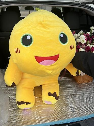 Большая мягкая игрушка «дракончик» ярко‑жёлтого цвета.