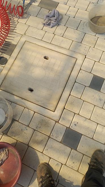 - Подготовка основания: разметка, снятие грунта, устройство слоя щебня и песка/отсева, выравнивание и трамбование, формирование уклонов и водоотводов, установка люков в уровень с покрытием.