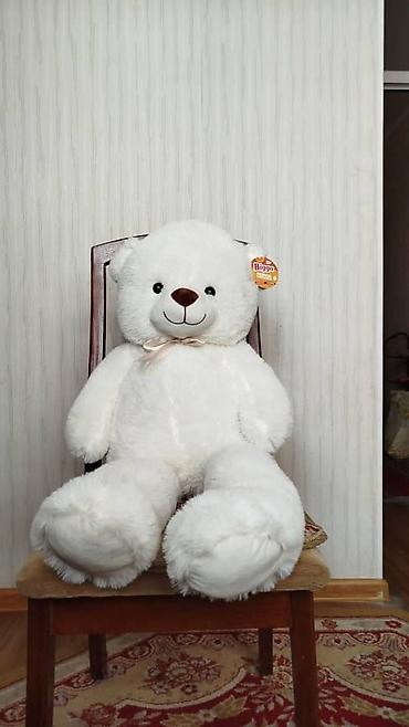 - Мягкие белые игрушки-мишки крупного размера, сидят почти во весь стул.