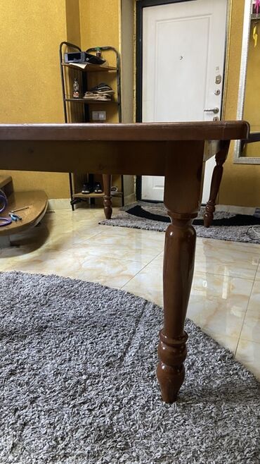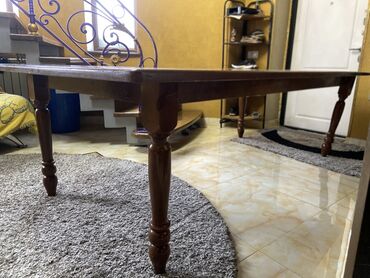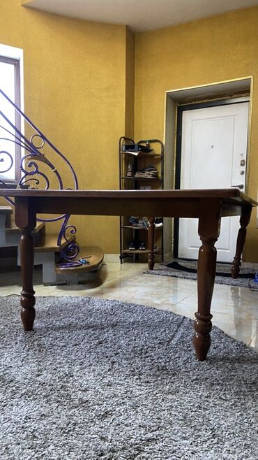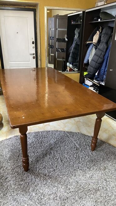 Большой обеденный стол из массива дерева, 4м/110, две штуки по 2метра, 10000сом аместе. - Материал: натуральное дерево (столешница и точёные ножки). - Форма: прямоугольный. - Вместимость: рас...