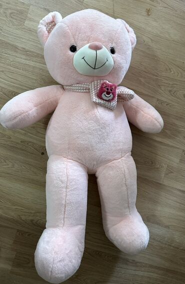 - Детали: вышитые ротики, пластиковые глазки, объёмные лапы, удобные для обнимашек. Розовый медведь украшен текстильной брошкой с мордочкой мишки.