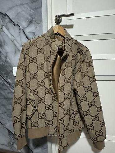 Бомбер с монограммой GG в бежево‑коричневой гамме. Бренд Гуччи реплика хорошего качества, материал хлопок!