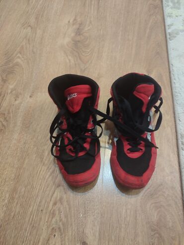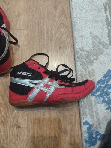 - Цвет: красный/черный с серебристыми полосами ASICS.
