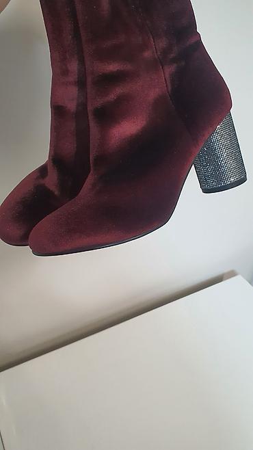 Бордовые женские ботильоны из бархата.Новые - Материал верха: мягкий