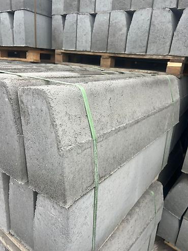 - Геометрия: прямолинейные элементы с фаской/скруглением по верхней кромке; ровные торцы для плотного примыкания. Поставляются паллетами, перевязка лентой.