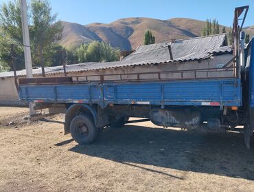 Бортовой грузовик синего цвета, оснащенный откидными бортами для удобства погрузки и разгрузки. Кабина имеет комфортное сиденье и стандартную приборную панель с рулевым колесом и рычагом переключения передач. Задняя часть кузова оборудована высокими металлическими стойками, что позволяет использовать его для перевозки различных грузов. Автомобиль подходит для выполнения сельскохозяйственных работ, строительных задач или перевозки крупногабаритных материалов. Удобен для транспортировки грузов на короткие и средние расстояния.Предназначен для эффективной работы в различных условиях эксплуатации.Кузов грузовика оборудован откидными бортами, что упрощает доступ к грузу и делает процесс погрузки и разгрузки более оперативным.