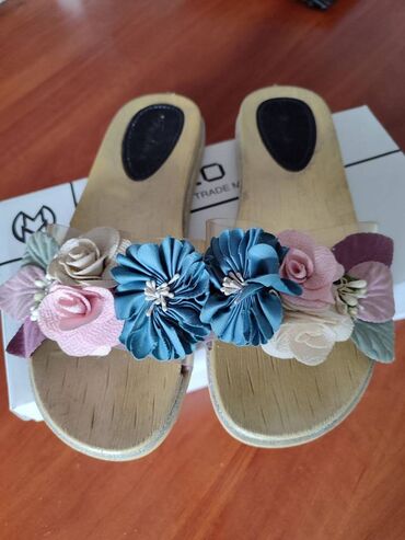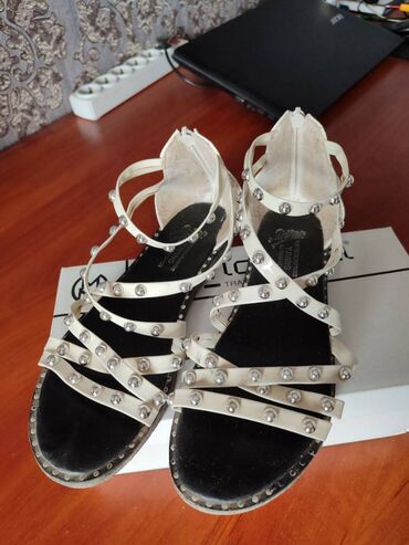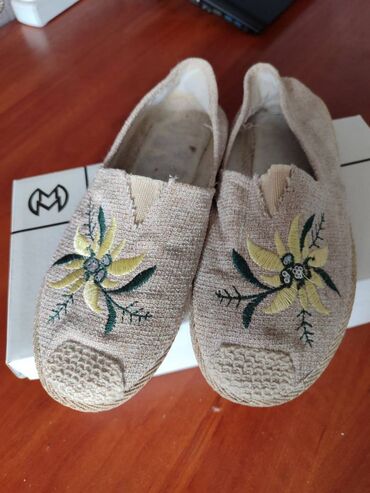 СамовывозПродаю обувь,размер указан 37,но по факту чуть меньше. На узкую ногу. Первое фото в идеальном состоянии босоножки 200 сом. Второе-тапочки тканевые,легкие,но нет стельки. Отдам. Кроссовки искусственная замша 50 сом. Оранжевые 50 сом ,белые лакированные 50 сом. Шлепки 39 размер,маломерят,думаю 37. 50 сом.