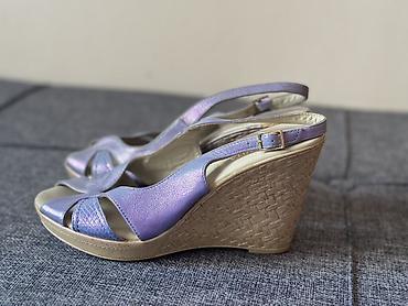Отличный выбор для тёплого сезона: удобная устойчивость танкетки и эффектный перелив лилового верха.