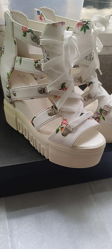 Босоножки женские белые на танкетке,размер 37,в отличном состояние,одевали 1раз