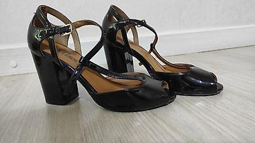 Женские черные босоножки на устойчивом каблуке. - Размер: 39 - Цена: 500сом - Цвет: черный - Материал верха: замша/нубук (визуально) - Подошва: гладкая - Дизайн: открытый носок, тонкая передняя пе...