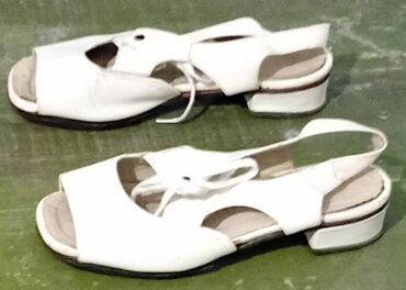 Женские босоножки белого цвета кожаные. - Модель: открытые босоножки с закрытым верхом и открытым носком - Цвет: белый - Размер: 38 (маркировка на стельке 520-2 38) - Застёжка: регулируемый ремешо...