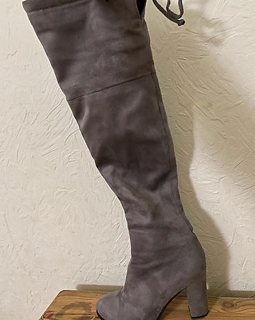 Белые женские сапоги до колена - Высота: до колена, прямая голенища. - Цвет: белый. - Носок: аккуратный заострённый. - Каблук: устойчивый широкий блочный, средняя высота (примерно 6–8 см). - Застё...