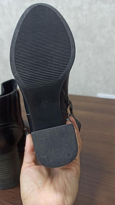37-38р., жен., ботильоны, экокожа, черные, на среднем каблуке, в отличном состоянии, целые, чистые, без пятен и посторонних запахов. Бишкек, мкрн "Восток-5". #женскиеботильоны# #женскаяобувь# #эк...
