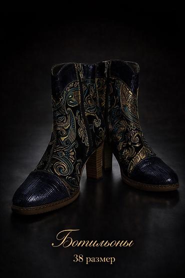 Полусапоги на каблуке, размер 38–39. - Модель: полусапоги до щиколотки - Принт: змеиный (под питона), бежево‑коричневая гамма с контрастными темными элементами - Каблук: высокий, устойчивый, прямо...