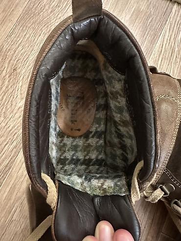 Подойдут для повседневной носки в межсезонье и лёгких прогулок. Цвет — тёмно‑коричневый. Размер и маркировка бренда видны на фото стелек/подкладки.
