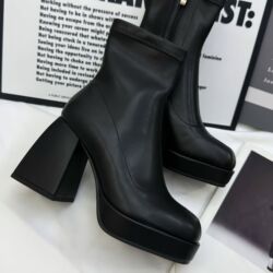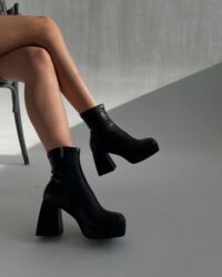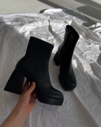 Черные кожаные ботинки и полуботинки (несколько моделей) 1) Высокие ботинки на каблуке - Материал: натуральная кожа - Цвет: чёрный, матовый - Высота выше щиколотки - Высокий устойчивый каблук-блок...