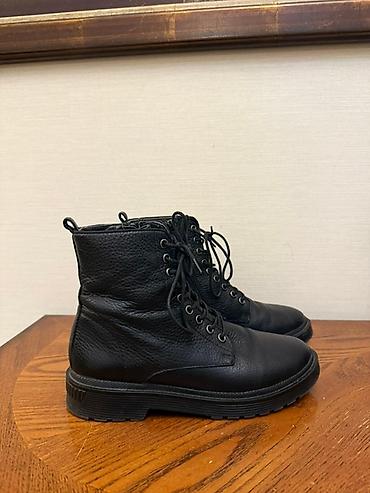 Ботинки черного цвета на шнуровке с дополнительной застежкой-молнией. Высокие берцы обеспечивают надежную фиксацию голеностопа. Шнуровка позволяет регулировать плотность прилегания по ноге. Практичная обувь, подходящая для повседневного использования в демисезонный период. Турецкий бренд “Inci”