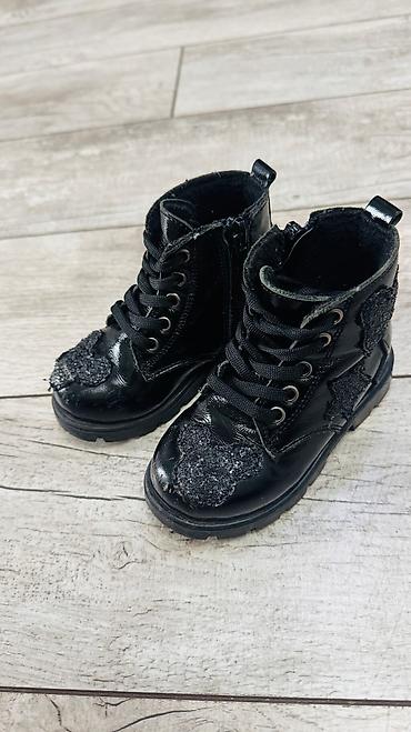 Детские ботинки, 2 пары комплектом. Размер :28 цена: 500 за две пары (цена символическая) 1) Пара 1: высокие шнурованные ботинки. - Цвет: чёрный с радужным эффектом. - Застёжка: шнурки + боковая ...