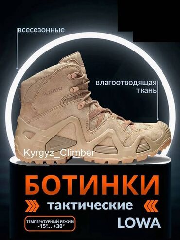 Стильные тактические ботинки Lowa - это надежная рабочая обувь для армии, активного отдыха и повседневной носки. Они отлично подойдут для зимнего и демисезонного периодов, обеспечивая ногам комфорт и защиту, они предназначены для температуры от -15° до +30°. Треккинговые ботинки для охоты изготовлены из высококачественных полимерных материалов, поэтому они обеспечивают прочность и долговечность, находясь даже в самых жестких погодных условиях. Высокая подошва походной спец обуви обеспечивает отличную амортизацию и защиту от ударов. Благодаря водонепроницаемой мембране, военные ботинки подходят для пользования в любых погодных условиях, предотвращая попадание влаги и сохраняя ноги сухими. Берцы Лова для рыбалки также известны своей прекрасной посадкой и комфортом. Туристические сапоги обеспечивают надежное крепление стопы, а мягкая анатомическая стелька поддерживает арку стопы и предотвращает усталость ног. Система шнуровки туристических ботинок позволяет максимально быстро и удобно завязывать шнурки в любой ситуации, так как состоит из нейлоновых и металлических петель, в которых вставлены прочные полипропиленовые шнурки. Приобретая, наши летние рабочие ботинки Lowa, вы получаете качественную обувь, которая сочетает в себе комфорт, функциональность и стиль. Эти ботинки дадут вам уверенность в любой ситуации, и станут вашим надежным другом на СВО и в повседневной жизни.