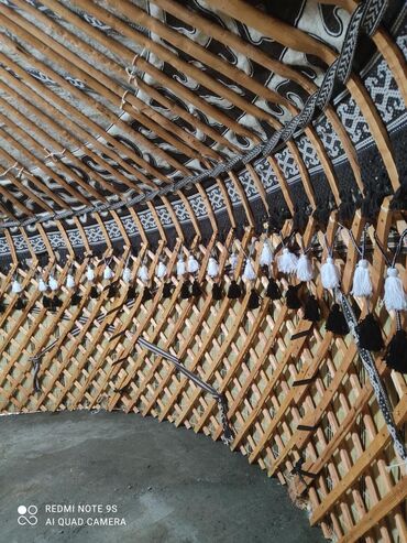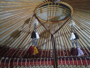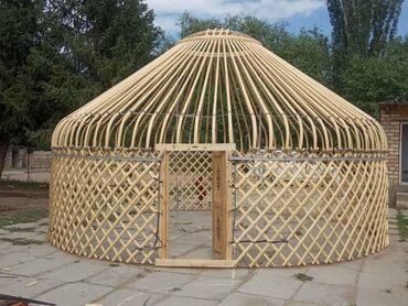 Киргизская юрта ручной работы (boz yurt) - Традиционная разборная конструкция: решётчатые стены (кереge), дуги-ууки и тюндюк. Быстрый монтаж/демонтаж, устойчивость к ветру. - Каркас из дерева, нар...