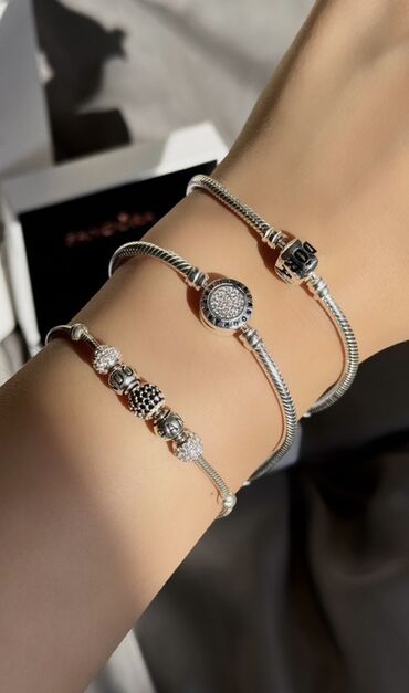 - Серебристые браслеты‑цепочки “змейка” для шармов, фирменные застёжки‑клипсы.