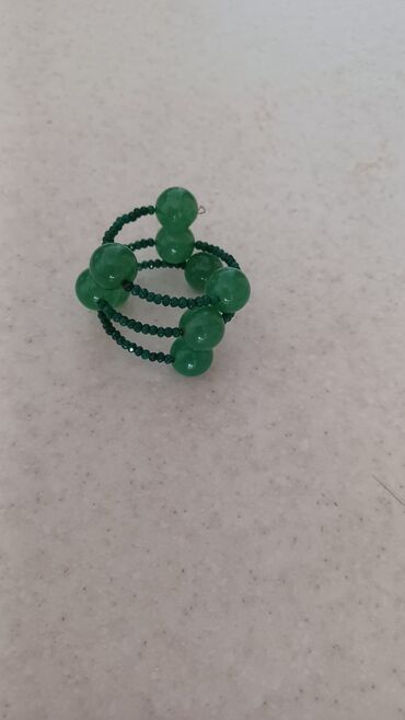 - Материалы: крупные круглые полупрозрачные зелёные бусины и мелкие огранённые стеклянные/кристаллические бусины в тон; соединение на прочной проволоке.