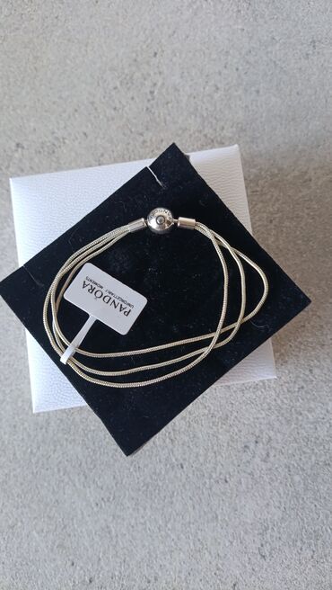 - Оригинальный многорядный браслет Pandora из серебристых змейки-цепочек