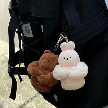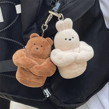 🐻- Милые мягкие фигурки в виде мишки и зайца с рельефными мышцами — забавный акцент для рюкзака, спортивной сумки, ключей.
