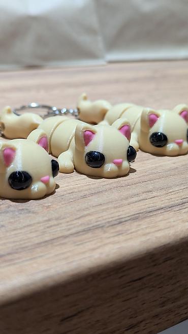 Мини-брелоки «котик» из пластика (3D‑печать).