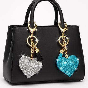Красивый, стильный и очень блестящий брелок в виде сердца. Подходит для сумки, рюкзака, ключей или как подарок. Украшен стразами и дополнен золотой бусиной и кисточкой. Смотрится дорого и эффектно ✨
