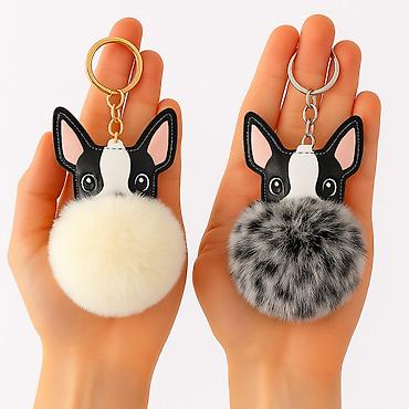 Стильный брелок - помпонов в виде мордочки французского бульдога. Каждый брелок — качественный эко-мех + декоративный кожаный верх с аккуратной прошивкой. Удобное крепление: классическое кольцо + цепочка + карабин — сразу можно цеплять на ключи, сумку или рюкзак.