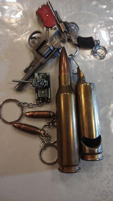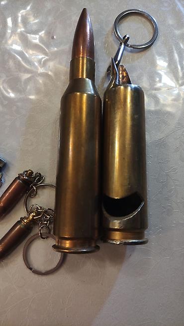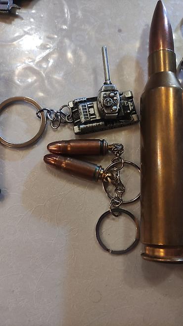 - Брелок «Патрон» — миниатюрные копии пуль на металлической цепочке и кольце. Корпус из латуни/металла, натуральная фактура, подходит для ключей, рюкзака или как сувенир.