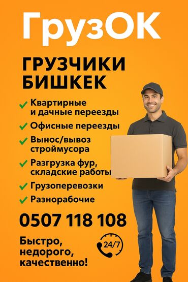 ГРУЗЧИКИ ЕСТЬ МЕБЕЛЬЩИКИ ЕСТЬ ЛЮБЫЕ РАБОТЫ ДЕЛАЕМ КАЧЕСТВЕННО, ЗВОНИТЕ 24/ 07 Грузчик кызматтары Көчүүдөбү же оор жүктү көтөрүү керекпи? Биздин тажрыйбалуу жана күчтүү грузчиктер сизге жардам бер...