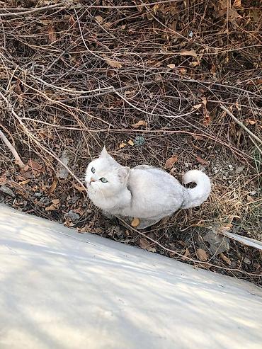 - Кошка компактного телосложения, плотная плюшевая шерсть серебристо-белого цвета с мягким затемнением по хребту.