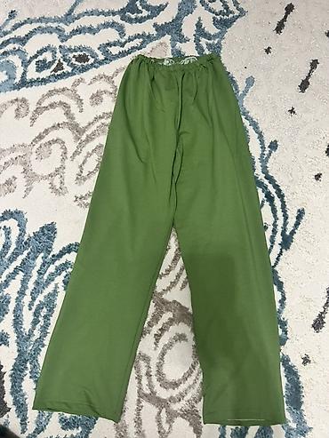- Брюки прямого кроя (хаки) на комфортной резинке.