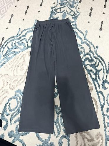 - Брюки кюлоты/широкие (темно-серые) на резинке, с боковыми карманами.