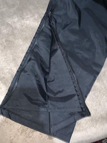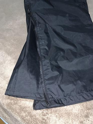 - Прямой крой, по бокам длинные молнии от низа к колену — удобно надевать поверх обуви/ботинок и регулировать ширину низа.