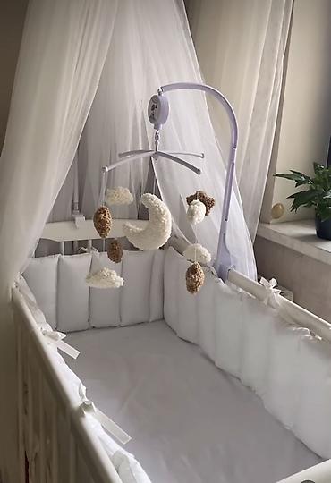 Детский комплект постельных принадлежностей KIDSMART для кроватки. Состав набора: - Бортики/бамперы с завязками по периметру кроватки - Одеяло - Подушка - Наволочка и пододеяльник - Простыня - Пол...