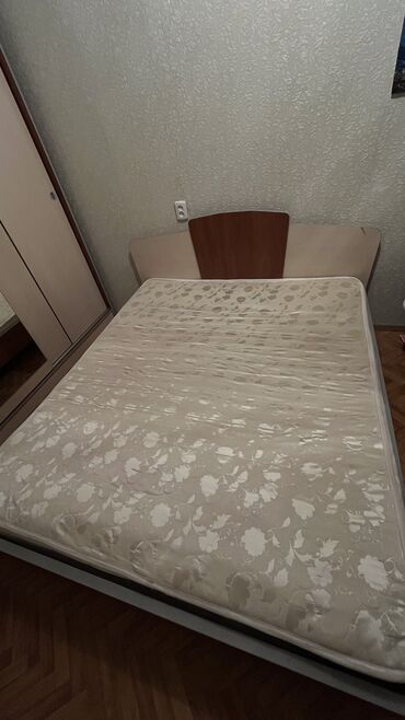 Двуспальная кровать, Б/у, С матрасом, длина - 200 см