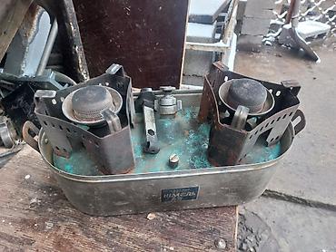 - Двухконфорочная походная горелка советского производства: маркировка «Сделано в СССР», модель «Шмель-3».