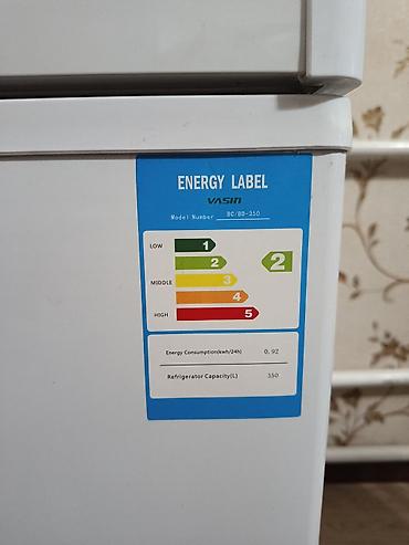 - Объем: 350 л (наклейка Refrigerator Capacity 350 L)