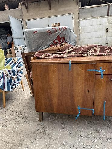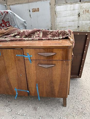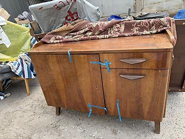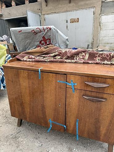 Винтажная мебель и интерьерные предметы в стиле СССР/ретро: - Буфет/тумба на высоких ножках, шпонированное дерево, две секции: левая с выдвижным ящиком и распашной дверцей, правая — отделение с дв...