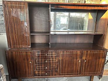 Идеально для сервировки и хранения посуды, текстиля и декора. Подойдет для столовой, гостиной или ретро‑интерьера, также как основа для реставрации/апсайклинга. Прочный каркас, многофункциональная организация хранения, характерный винтажный облик. Примерные габариты по фото: крупногабаритный предмет, с широкой столешницей‑полкой между нижней и верхней частями.