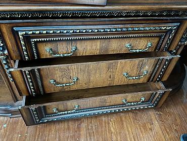 Старинная стенка/буфет из дерева Габариты ориентировочно: ширина около 150–170 см, высота около 120–140 см, глубина около 40–45 см.